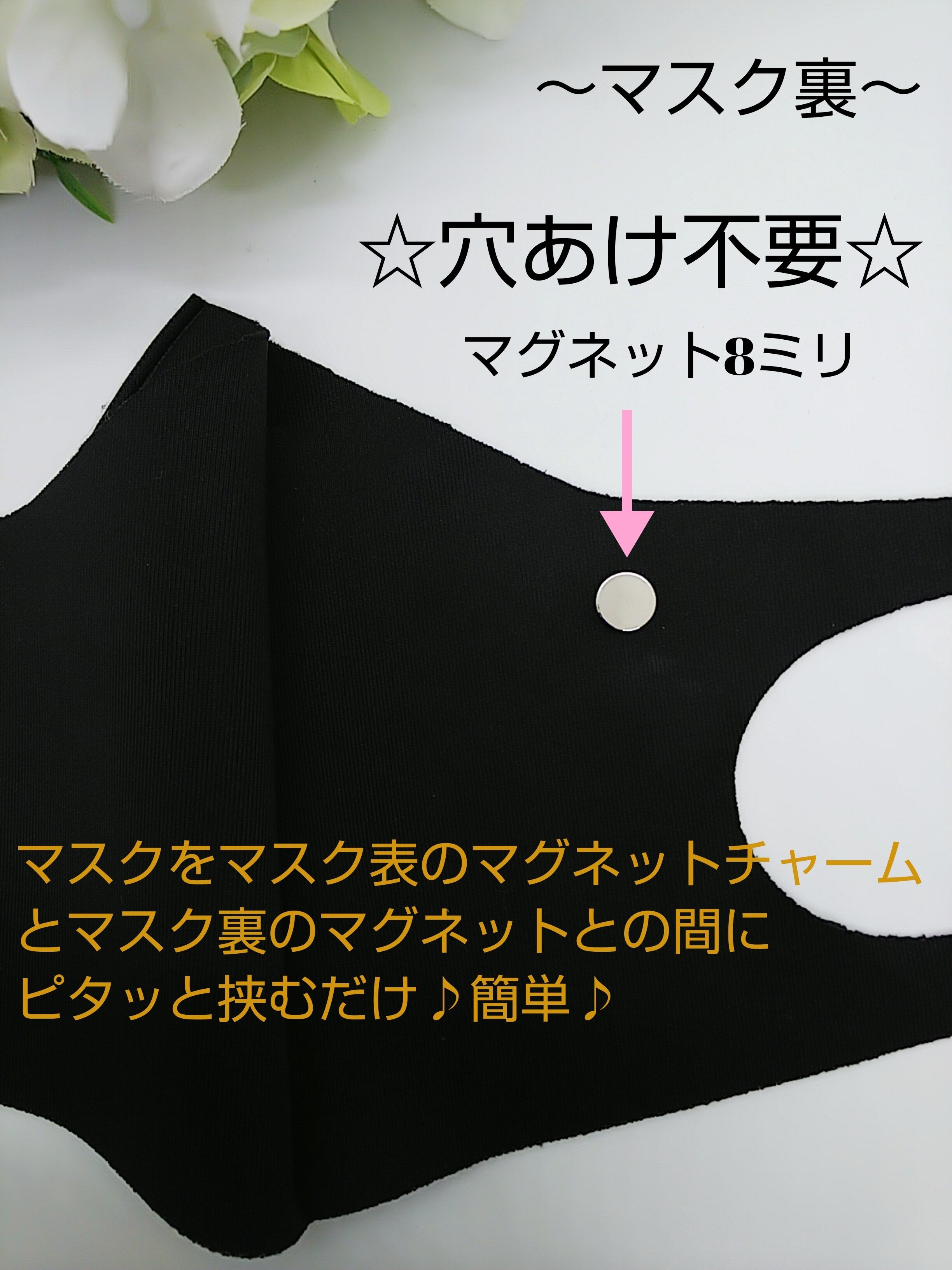 ・チャームとマグネットをマスクの間に挟んでとめるだけ